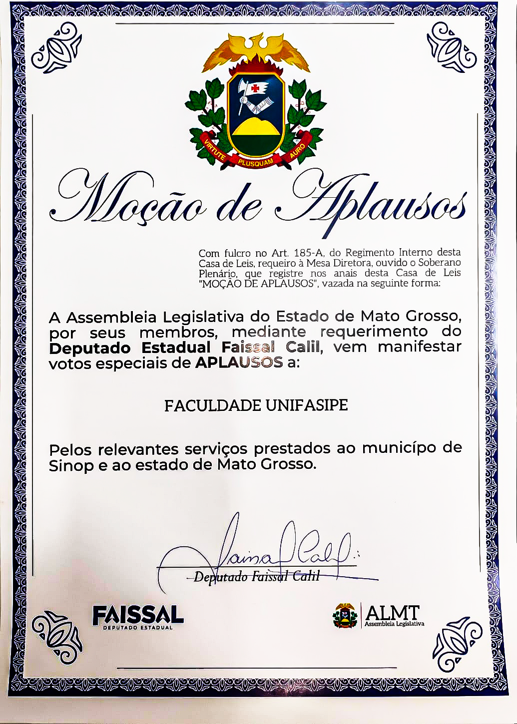 Com mais de duas décadas de atuação, o Grupo FASIPE se consolidou como referência educacional, científica e cultural em Mato Grosso, contribuindo de forma expressiva para o desenvolvimento regional. A homenagem oficial inscreve o nome da instituição no rol das que recebem reconhecimento parlamentar por sua relevância social